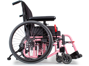 The Galaxy Lite is an innovative, low maintenance, high performance wheelchair made with quality and durability in mind. This wheelchair includes a specially designed side frame and axle plate which allow the user to achieve different set-up configurations. The Galaxy Lite is a lightweight and easily foldable wheelchair. This makes it ideal for transportation purposes. The unique cross brace technology creates a structurally sound frame using an oversized pivot axle, which creates straighter tracking. This growable light weight chair offers height and angle adjustments.