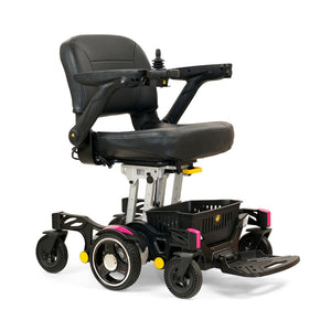 Standard Features: • Center Wheel Drive for Optimal Control & Maneuverability • Independent 4-Wheel Suspension • Springless Articulating Chassis • USB Port • Front & Rear Lights • Width Adjustable Armrests • Textured Soft Touch Armrests • Angle Adjustable Foot Plate • Easy Access, Airline-Friendly, 12.5 AH Lithium-ion Battery with Travel Case • PowerLink™ Connectivity for Easy Disassembly/Assembly • Removable Storage Basket • Easily Interchangeable Color Shrouds