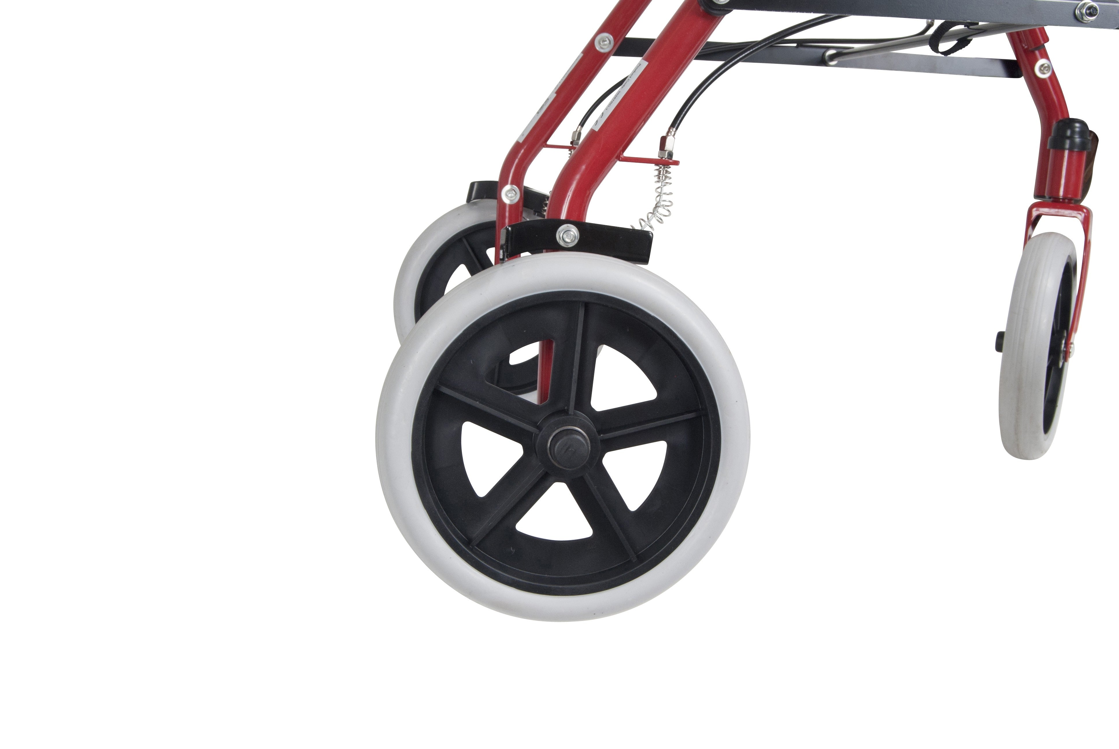The Four Wheel rollator is perfect for perfect for people looking for a easy to use walking aid. The backrest can be folded up and down but can also be removed for easier transport. The rollator comes with a basket to store various personal belongings during the user's travels.