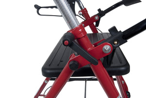 The frame is made of a highly durable steel and the rollator includes 8" non-marring casters which make the unit ideal for indoor and outdoor use. The handles are ergonomic making them easy to grip, are height adjustable, and include easy to use loop locks.