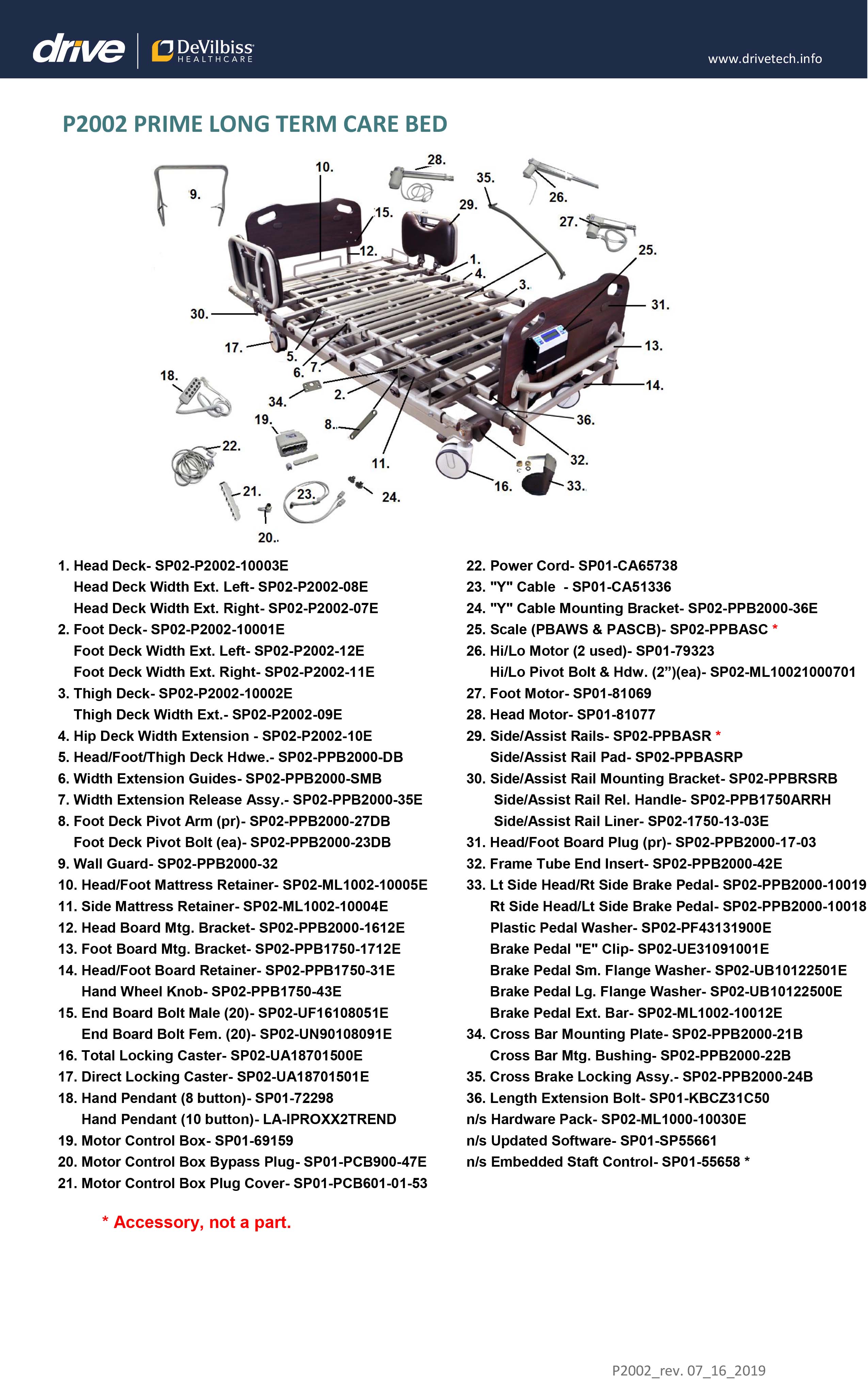 The Drive P2002 Long Term Care Bed is a full electric homecare bed with the ability to withstand up to 1000 pounds. Featuring various positions like comfort chair, cardiac chair, and Trendelenburg/reverse Trendelenburg, the adjustability of the P2002 helps provide added comfort and relaxation positioning for the resident and facilitates caregiver accessibility. Cardiac Chair positioning is beneficial for residents with heart and respiratory problems that find the semi-upright position brings comfort and relief by elevating the torso from the waist up, which provides relief to the lungs and increases circulation. The Trendelenburg/Reverse Trendelenburg capable positioning with Staff Control Option is ideal for rehab and sub acute care, as it provides therapeutic benefits that can aid in circulation and ease discomfort.