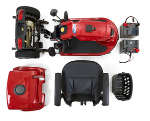 Durable vibrant red, blue, and grey color shrouds add to the sportiness. Other features include easy disassembly, front and rear lighting package with side reflectors, and new wheels. Standard U1 batteries offer a 12 mile per-charge range. An optional 50AH battery offers extended range. The Companion is the ultimate value in a fulltime, yet portable scooter.