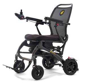 The all-new Cricket Power Wheelchair is stylish, agile, and extremely portable. Crafted with an incredibly strong yet lightweight 100% carbon fiber frame, the Cricket weighs as light as 33 lbs.*, making travel a breeze! The slim sporty design is perfect for navigating indoors and out while sightseeing, shopping, or dining. The roomy padded seat cushion and durable mesh back align with the natural curves of your body providing long-lasting comfort while on the go.