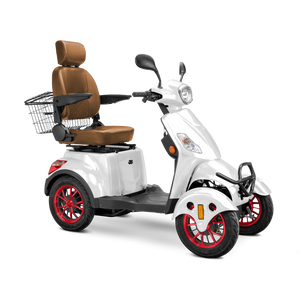 The Prestige redefines modern comfort and reliability, offering everything you need for a smooth and enjoyable ride. Powered by a robust 600-watt motor, it reaches speeds of up to 15 mph and delivers a drive range of 35 miles on a single charge. The fully adjustable, upgraded diamond-stitched seat ensures ultimate comfort, making every ride a pleasure. Suspension springs on each wheel and durable tubeless tires provide excellent stability and shock absorption. Its state-of-the-art lighting package includes a headlight, taillight, brake lights, and turn signals for enhanced visibility and safety. Secure storage is provided with both a locking under-seat compartment and a rear seat storage basket. For added control, a three-position speed switch allows you to limit speed for safe operation in different environments. An optional electric brake system is also available. Shipped fully assembled and designed for you, the Prestige delivers top-tier performance, security, and comfort in one exceptional scooter.