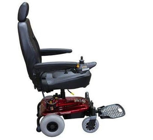 The Jimmie is a portable and light weight power chair designed for the consumer on the go. The unit has a quick-disconnect system for effortless disassembly, advanced electronics and high efficiency in-line motors. The Jimmie disassembles effortlessly into three pieces, with the heaviest weighing just 35.8 lb. It also has all the features of larger power chairs including height & width adjustable arm rests, adjustable footplate and adjustable seat height.