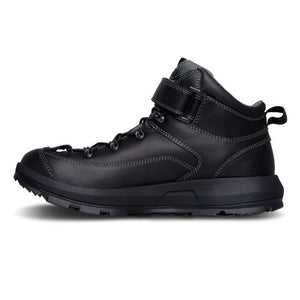 The Yukon is designed to be a comfortable leather hiking boot with a unique closure system using elastic across the instep to accommodate movement and an easy-to-use hook-and-loop strap to secure the fit. The rugged outsole is designed as a durable, stable, and supportive outsole, intended for many terrains and everyday use. The uppers are made of soft, full-grain leather in either black or chestnut brown with a comfort padded micro-suede lining and seamless internal toe box. Crafted with high-quality material, the Yukon delivers an outdoorsy look with a supportive feel for anyone who wants comfort.