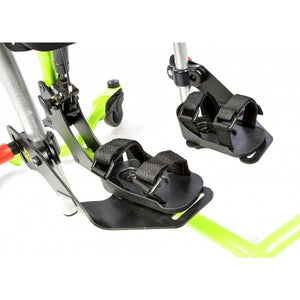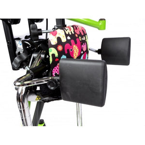 But the EasyStand Zing’s advantages aren’t limited to its groundbreaking frame design, it’s the options that further set it apart from all other pediatric standers. Leg abduction up to 30 degrees in each leg is possible, multi-adjustable tray is angle adjustable and swings away both to the left and right while still remaining attached to the frame. Leg length discrepancies and hip and knee contractures are accommodated with multi-adjustable foot plates, independent adjustable calf pads and multi-adjustable knee pads.