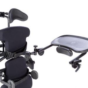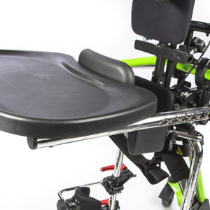 The Zing MPS TT and Zing MPS are capable of supine to prone in one motion, up to 30 degrees of independent leg abduction, and have an available swing-away tray. The MPS TT or tilt-table style features a single, longer, wider upper-body support pad. Padded strapping can be ordered for the knees, waist and upper body, rather than individual support and positioning components such as hip guides and lateral supports. That said, with the MPS TT if more support is needed in specific areas, the same support and positioning components that are available on the MPS can be added to the MPS TT, where needed. For example, order padded strapping for the knees and waist but add lateral supports for more robust upper-body support and alignment. This flexible system can simplify the transfer process for kids who do not require maximum support.